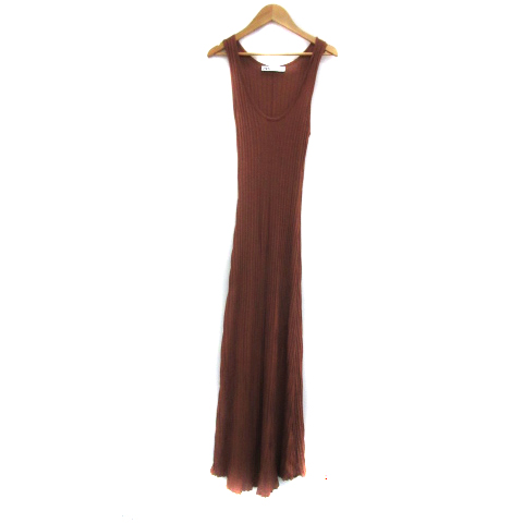【中古】ザラ ZARA リブワンピース マキシ丈 ロング丈 ノースリーブ Uネック 無地 S ライトブラウン /YS42 レディース