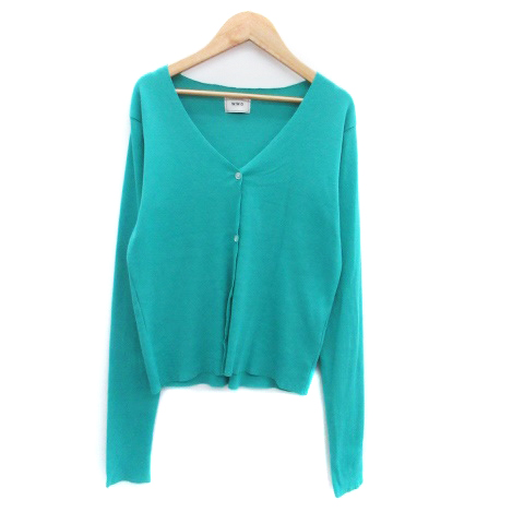 【中古】フーズフーギャラリー w.w.g ニットカーディガン Vネック ミドル丈 無地 F 青緑 ブルーグリーン