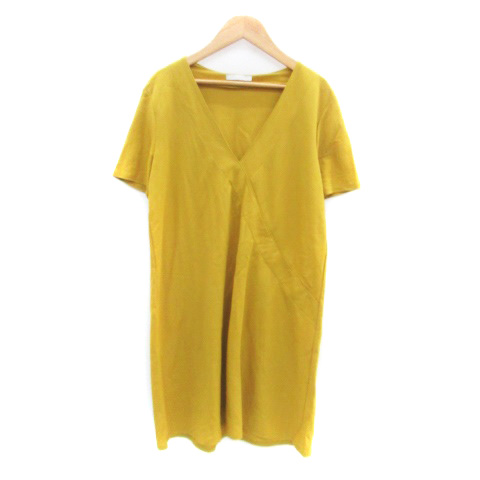 【中古】ザラ ZARA ワンピース Vネック 半袖 ひざ丈 M マスタードイエロー /HO32 レディース