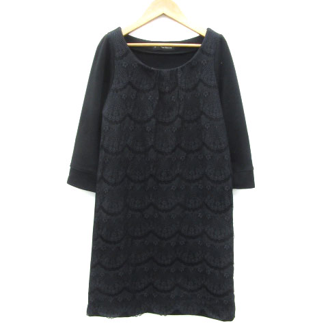 【中古】グリーンレーベルリラクシング ユナイテッドアローズ ワンピース ひざ丈 七分袖 レース 黒 レディース