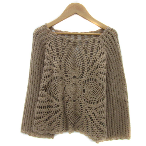 【中古】アリシアスタン ニット カットソー 長袖 ラウンドネック かぎ編み F ブラウンベージュ レディース