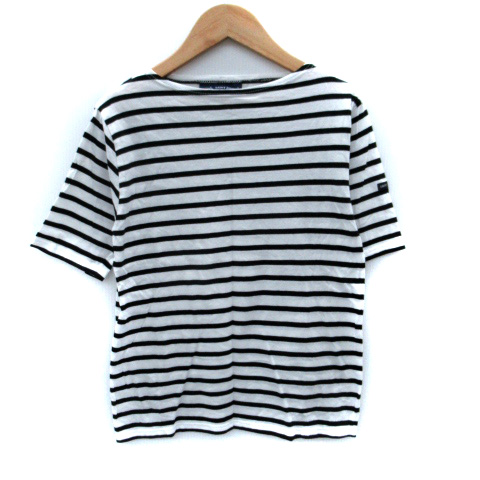 【中古】セントジェームス Tシャツ カットソー 半袖 ボートネック ボーダー柄 XS ホワイト 黒 ブラック レディース