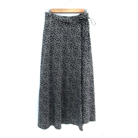 【中古】インデックス INDEX ラップスカート フレアスカート マキシ丈 ロング丈 花柄 L 黒 ブラック 白 レディース