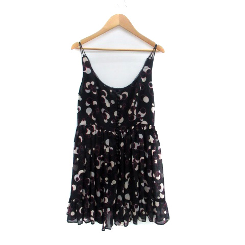 【中古】グレースコンチネンタル GRACE CONTINENTAL キャミソール Vネック ティアード 総柄 マルチカラー 黒