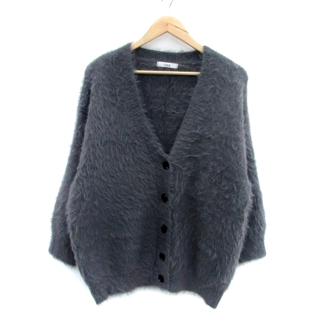 【中古】フィフス fifth シャギーニットカーディガン Vネック ミドル丈 チャコールグレー /HO20 レディース