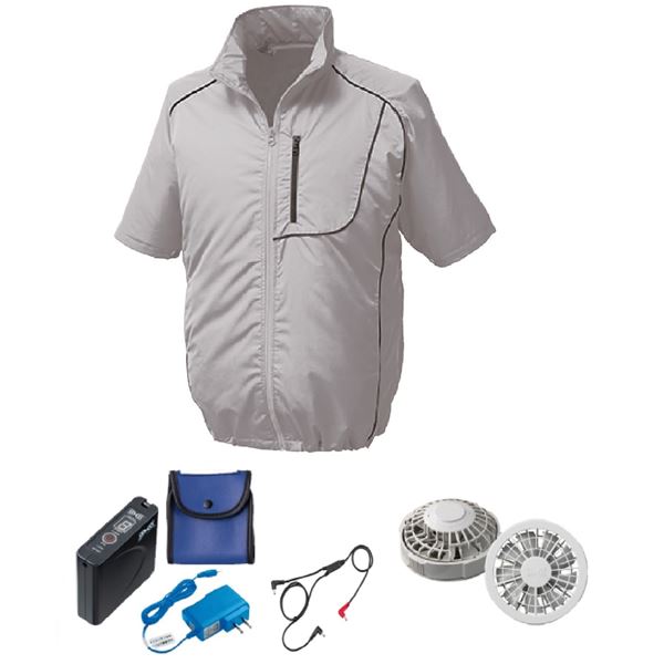 KU91720 空調服 R ポリエステル製 半袖 FAN2200G・RD9261・LISUPER1セット シルバー×ブラック M