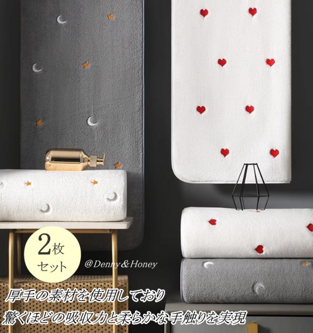 送料無料 2枚セット フェイスタオル タオル ハート ハート柄タオル 総柄 LOVE 月 ムーン インテリア 雑貨 厚手 吸収力 柔らかい ソフト 瞬間吸収 春 夏 秋 冬 カジュアル ラブ ガーリー フェミニン ホーム かわいい ギフト プレゼント 無料ラッピング 新生活