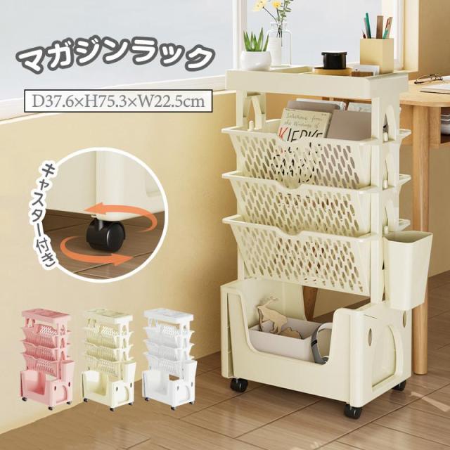 マガジンラック スリム ファイルワゴン 薄型 回転 キャスター付き おしゃれ 北欧 コンパクト 大容量 サイドワゴン デスクワゴン 子供部屋 オフィス 教科書収納