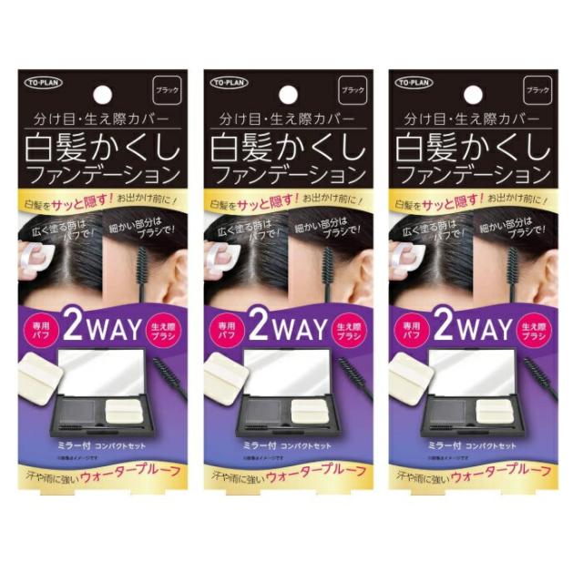 【3セット】 TO-PLAN 白髪かくし ファンデーション ミラー付 コンパクトセット ブラック 白髪 白髪染め カラー ヘアケア 生え際 分け目 塗るだけ ウォータープルーフ