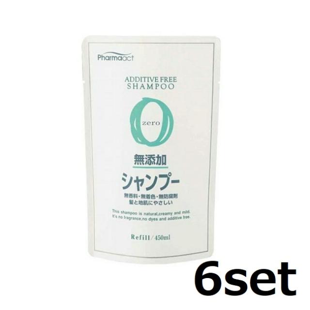 【6セット】 熊野油脂 ファーマアクト 無添加 シャンプー つめかえ用 450mL 詰め替え パウチ 保湿 パサつき アミノ酸 セラミド ダメージケア シャンプー