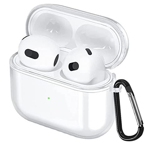 AirPods 第3世代 ケース TPU 分離式 クリア イヤホンケース 透明 軽量 衝撃を防ぐ 保護ケース 紛失防止 カラビナ付き 装着したまま充電 (AirPods 3対応 クリア)
