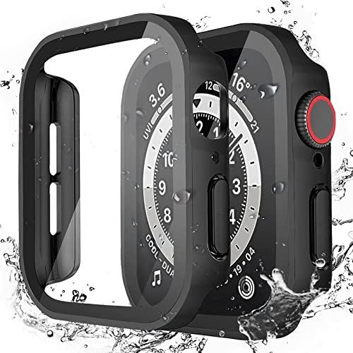 Apple Watch ケース Series 10 / 9 / 8 / SE / 7 / 6 / 5 / 4 44mmケース 防水 一体型 新デザイン 3D直角エッジ 超薄型 PC+ガラス素材 高透過率 対応 Apple Watch カバー 全面保護 装着簡単 高耐久 耐衝撃 ブラック 送料無料