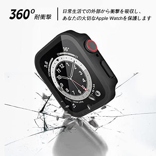 Apple Watch ケース Series 10 / 9 / 8 / SE / 7 / 6 / 5 / 4 44mmケース 防水 一体型 新デザイン 3D直角エッジ 超薄型 PC+ガラス素材 高透過率 対応 Apple Watch カバー 全面保護 装着簡単 高耐久 耐衝撃 ブラック