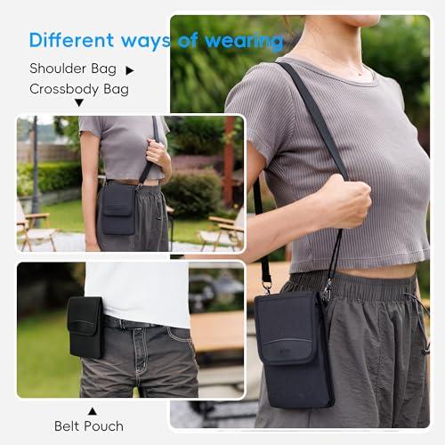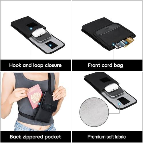 【お出かけに必要な小物を収納可能】スマホだけでなく、モバイルバッテリー、財布、マスク、イヤフォン、鍵、小銭、タバコ、メガネなどを収納できます。ポーチの前面にクレジットカードや 身分証を簡単に収納できる内蔵ポケットがあり、ポーチの背面にはパスポ