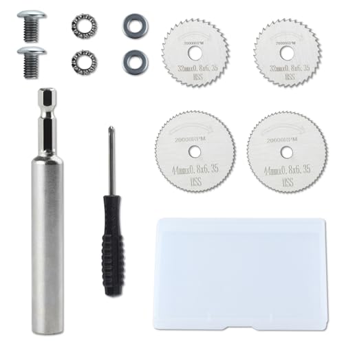 パッケージが含まれます:1/4'角シャンクx 1、32ミリメートル/1.25'鋸刃x 2、44ミリメートル/1.73'鋸刃x 2、丸ガスケットx 2、ネジx 2、鋸歯状ガスケットx 2、ドライバーx 1、ストレージボックスx 1。鋸刃を保護するために、鋸刃には保護油の層がありますので、気にしないでください。