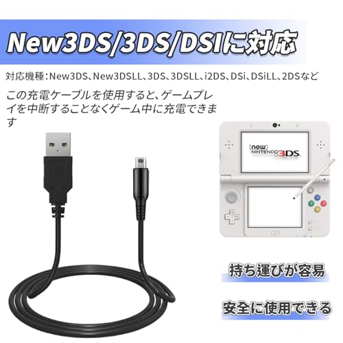 3DS 充電器 3DS 充電ケーブル (1本セット) USB電源コード 1.2m ds lite 充電器 急速充電 高耐久 持ち運びが容易 switch 充電ケーブル 多機種対応 ニンテンドー New3DS / New3DSLL / 3DS / 3DSLL / i2DS / DSi/DSiLL / 2DS ブラック