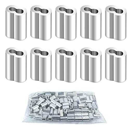 【セット内容】150個入りの2mmアルミ製ワイヤーロープ固定スリーブ。シルバートーンの八字型アルミスリーブで。穴の直径は26mmで、直径2mmのワイヤーロープに適しています。