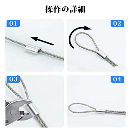 【多用途】二重穴アルミニウムスリーブは、盗難防止用ネット、ペット用ロープ、物干しワイヤーなど様々な用途に適しており。ペンチやバイスを使ってワイヤーロープを簡単に固定できるので、本棚や家具の地震対策としても活用できます。