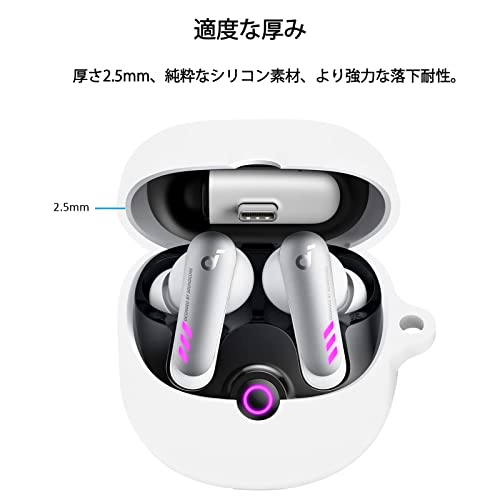 Anker Soundcore VR P10 ケース カバー Anker Soundcore VR P10 シリコン ケース 保護カバー 落下防止 キズ防止 耐衝撃 軽量 装着充電可能 防水防塵 カラビナ付き(ホワイト)