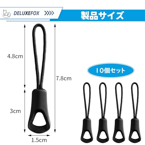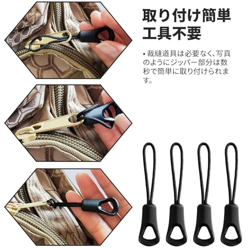 ジッパープル 交換用ジッパー (10個セット) ファスナー 引き手 ジッパータブ 取付簡単 ジッパープル 修理キット 引っ張りやすい DIY 手芸用 チャック 衣類 バッグ 靴 修理用パーツ 引き手 (ブラック)