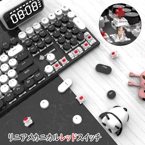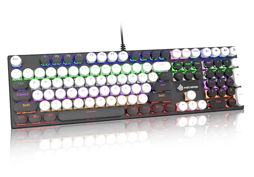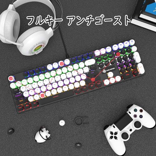 有線パンクキーボード メカニカルキーボードノブ付き レトロなラウンドキーキャップ タイプライター 赤軸 108キー フルキーアンチゴースト 白色LED 25種類のバックライトモード USB有線コンピュータキーボード Windows XP / 7 / 8 / 10 / 11 / Mac OS対応 (ブ...