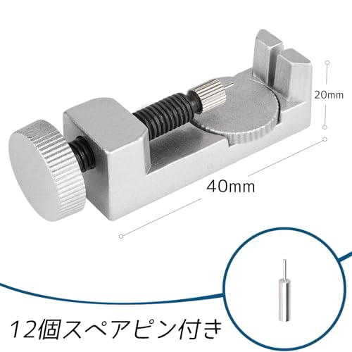 専門の腕時計ベルト調整ツール - この時計ベルト調整工具キットには、金属製の時計バンドリムーバーと12個の予備ピンが付属しています。腕時計のベルト調整や修理に最適なツールです。
