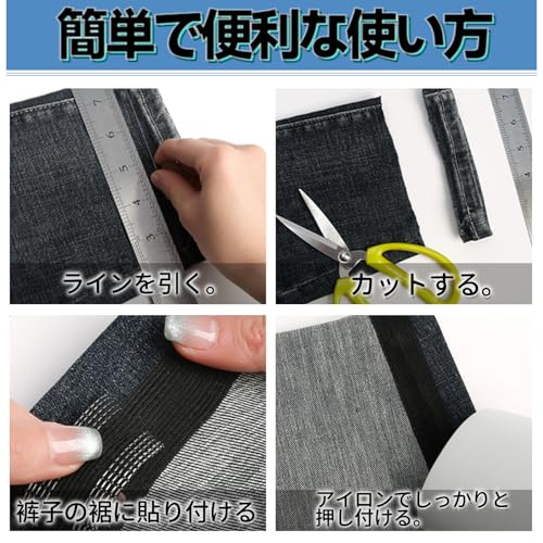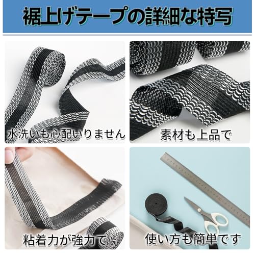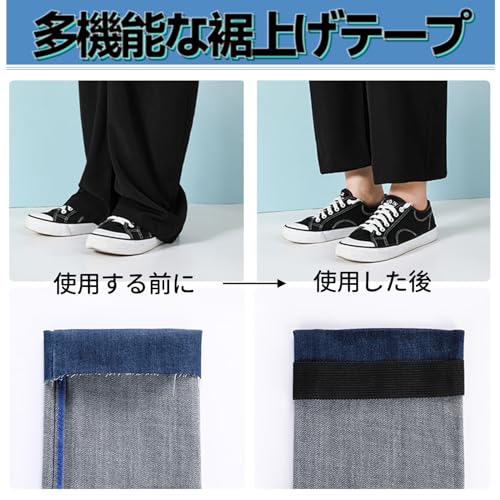 【簡単裾上げテープ】裾上げテープは、アイロン不要で手軽に美しい裾上げが実現します。縫い付け作業の手間もなく、忙しい方にもおすすめです。