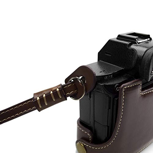 SONY ソニー A9 / A7R III (A7R3) / A7III カメラケース ILCE 9 / A7R3 ボディケース つけたまま バッテリー交換 可能 三脚ネジ穴付き(コーヒーBとリストストラップ)