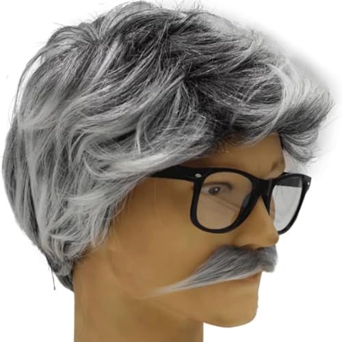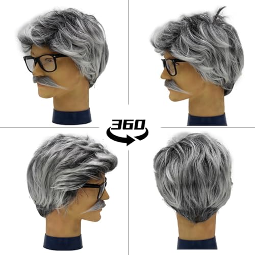 グレー ミックス ブラック ショート ウィッグは、おじいさんのコスプレ、おじいちゃんのコスチューム、ハロウィン、テーマ パーティー、日常使い、または単に楽しむのに最適です。