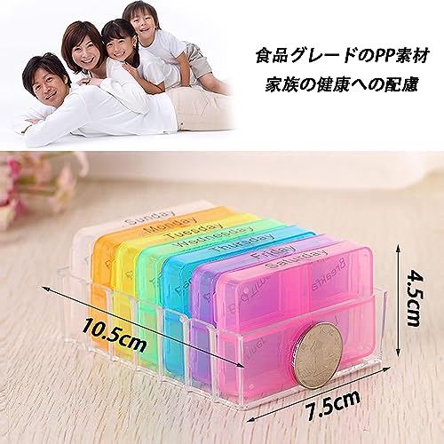 ピルケース 薬ケース サプリメントケース 1週間 錠剤箱 1日3回 携帯用 収納箱 薬入れ 習慣薬箱 コンパクト曜日シール付き 旅行 ディスペンサー