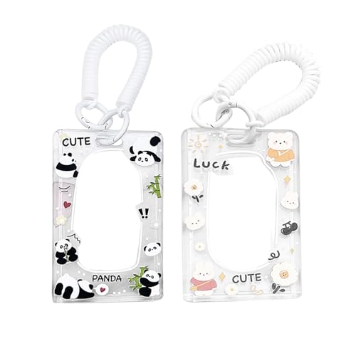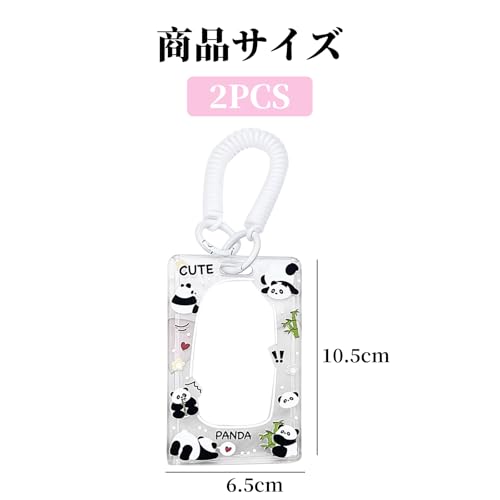パスケース 定期入れ [2個入り かわいいパンダ×ウサギとクマ] かわいい 透明 両面 icカードケース 定期券ケース バスカードカバー スライドカバー設計 キーホルダ付き 伸縮可能な長いロープ 社員証 ICOCA SUICA 通勤 通学 バス 電車 パンダの図案 可愛い 入 ...