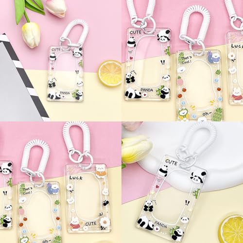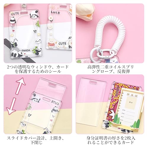 パスケース 定期入れ [2個入り かわいいパンダ×ウサギとクマ] かわいい 透明 両面 icカードケース 定期券ケース バスカードカバー スライドカバー設計 キーホルダ付き 伸縮可能な長いロープ 社員証 ICOCA SUICA 通勤 通学 バス 電車 パンダの図案 可愛い 入学祝い プレゼント