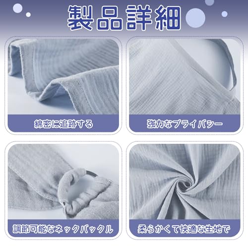 【高品質の素材】授乳カバーは高品質の綿素材で作られ、柔らかくて快適な生地で、ママと赤ちゃんの肌をケアします。通気性の良いので、オールシーズンお使いいただけます、汗を吸い取り。耐久性と速乾性を追求し、汚れが落ちやすいます。