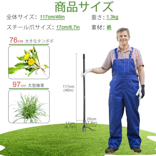 草取り道具 立ったまま 1.2M雑草取り器具 スタンドアップ雑草抜き 道具 草刈り道具 4本爪付き 手動 軽量 雑草抜く器具 草むしり 便利グッズ 草刈りスコ 草抜き機 坪庭用 農事用