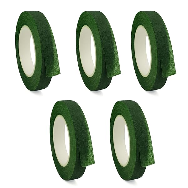 フローラルテープ フローラテープ 造花テープ フラワーテープ 濃い緑 5巻入 フラワーアレンジメントキット 作り用テープ 花 製作 茎巻き用 DIY 手芸 材料 花材 花屋 花束 アクセサリー ダークグリーン
