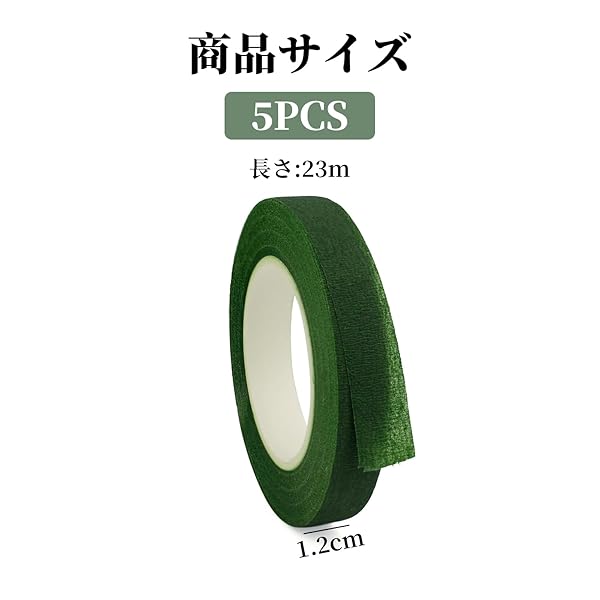 【パッケージ内容】フローラルテープ5巻入り。 カラー:ダークグリーン