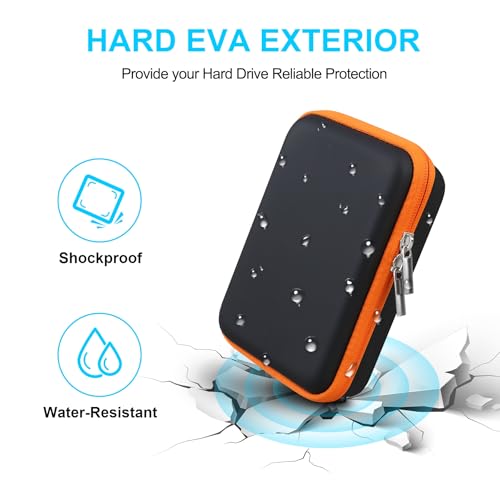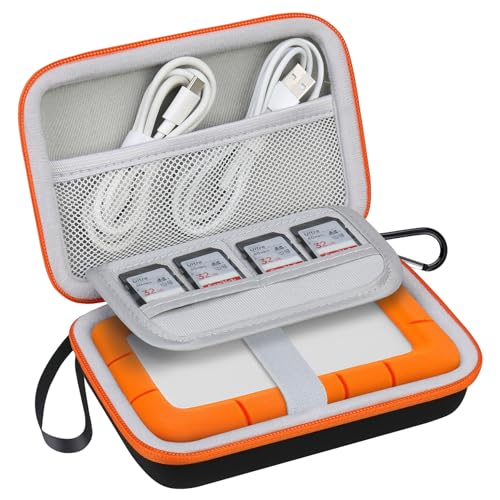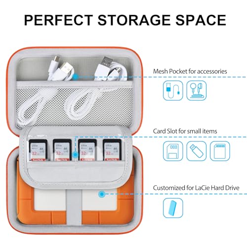 ハードドライブ キャリング ケースLaCie Rugged Mini / Rugged 外付けハードドライブ ポータブルHDD 1TB 2TB 4TB 5TB USB 3.0 2.0ハードEVA耐衝撃保護ストレージホルダートラベルバッグ ブラック+オレンジ