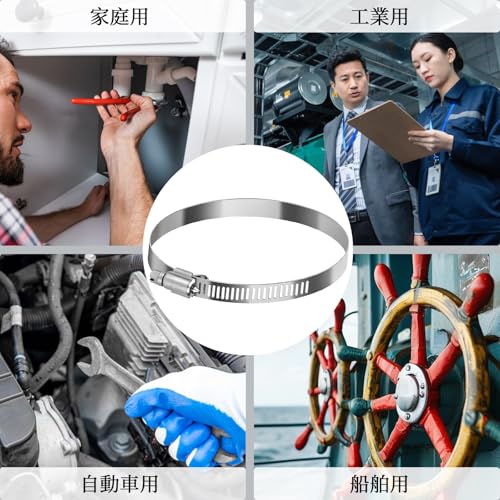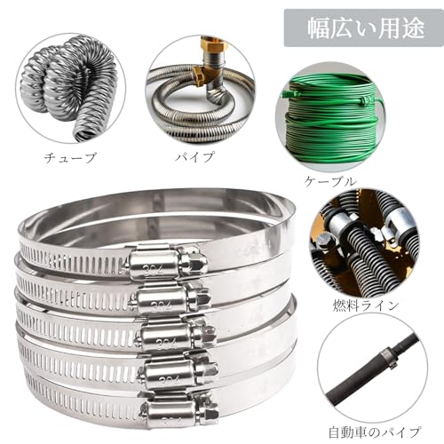 【幅広い用途】ホースバンドはホース、パイプ、ケーブル、チューブ、燃料ライン、家庭用、自動車用、工業用、船舶用などの固定に適しており、屋内でも屋外でも使用でき、