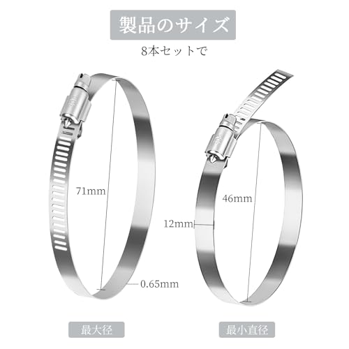 ホースバンド ホースクランプ 8個セット ダクト用ホースバンド 汎用ホースバンド ステンレスバンド ホースクリップ 固定バンド 304ステンレス 調整可能 強力固定 耐熱 耐食 φ46-70mm対応