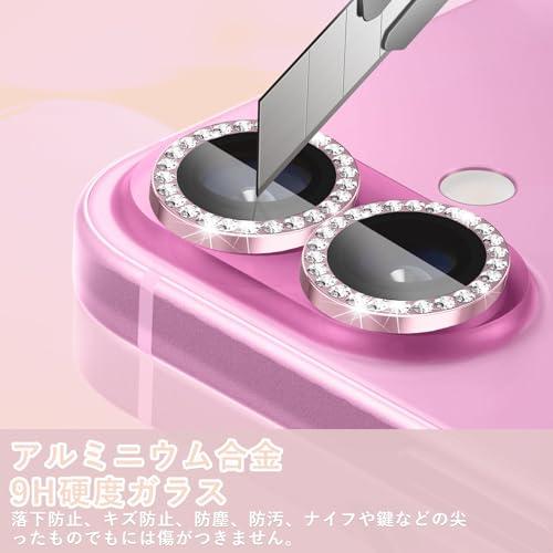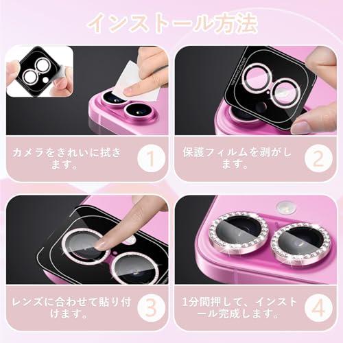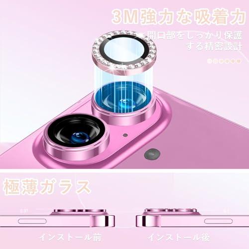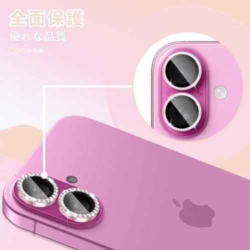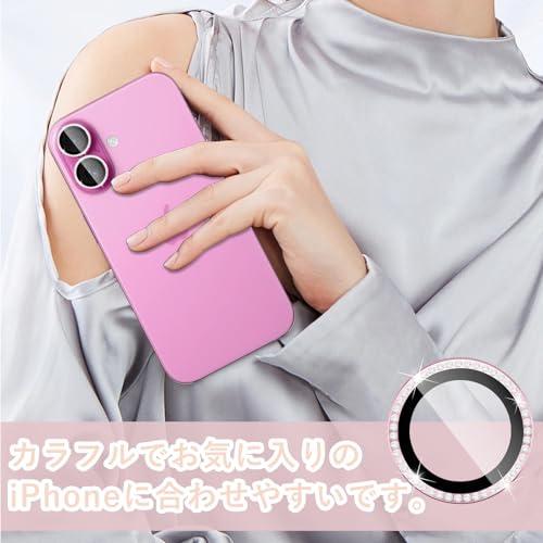 iPhone 16 カメラカバー iPhone 16 Plus レンズカバー ダイヤモンド カメラフィルム レンズ保護フィルム ダイヤモンド強化ガラス+アルミリング ガイド枠付き 9H硬度 二重保護 全面保護 衝撃吸収 防塵 落下防止 防水 高透過率 用の iPhone 16 対応 / 用の iPhone 16 Plus 対応レンズカメラカバー (ピンク)
