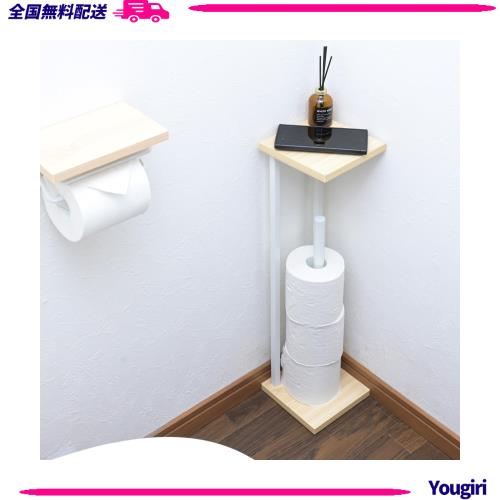 [山善] ラック トイレットペーパー スタンド トイレ 収納 スリム 棚付き (スマホ置き/インテリア) トイレットペーパーホルダー 隙間収納