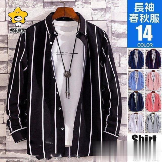 シャツ メンズ 長袖 ボタンダウンシャツ ストライプシャツ ビジネス カジュアル 開襟シャツ 秋 秋物 春 春服 長袖シャツ shirt カジュアルシャツ メンズシャツ ワイシャツ チェックシャツ スリム シャツジャケット ブラウス ルームウェア 部屋着 お兄系 おしゃれ メンズファッション 20代 30代 40代 50代 新生活