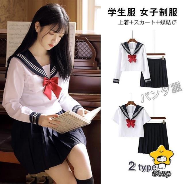 スクール制服 セーラー服 女子制服 学生服 大サイズ 上下セット 赤蝶結び付き 入学式 卒業式 学園祭 長袖 半袖