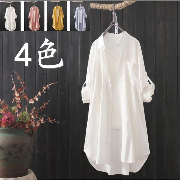 羽織り 春色 シャツ ロング丈 レディース シャツワンピ ロールアップ 長袖 春 夏 秋 オーバーサイズ 体型カバー ゆったり