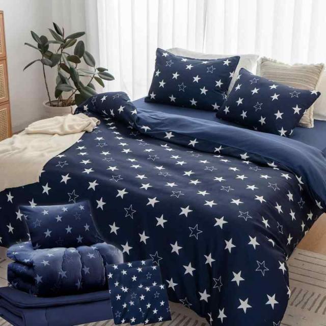 Sねむりのサンショップ 布団セット (シングル【7点セット(カバー付き)】, スター柄ネービー)