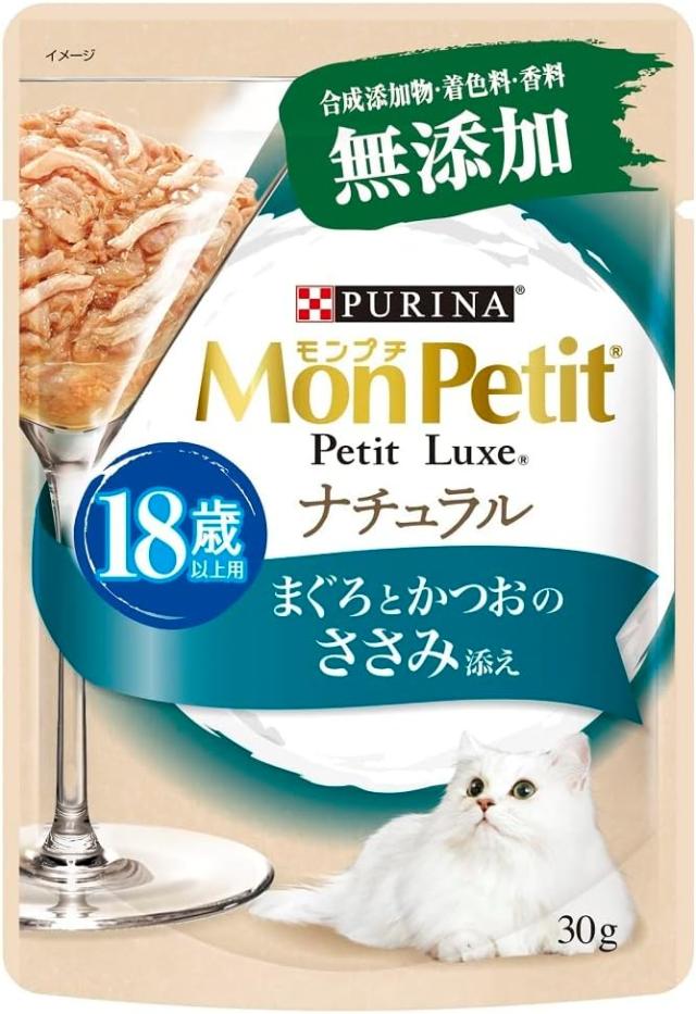 【48個セット】ネスレ日本 モンプチ プチリュクス パウチナチュラル18歳以上用まぐろとかつおのささみ添え 30g
