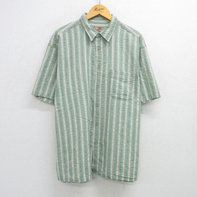古着 アメリカンイーグル American Eagle 半袖 ラガー シャツ メンズ 90年代 90s 襟デニム 大きいサイズ コットン 緑他 グリー 中古 古着