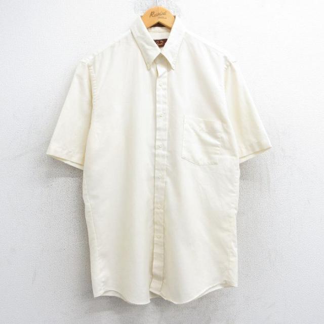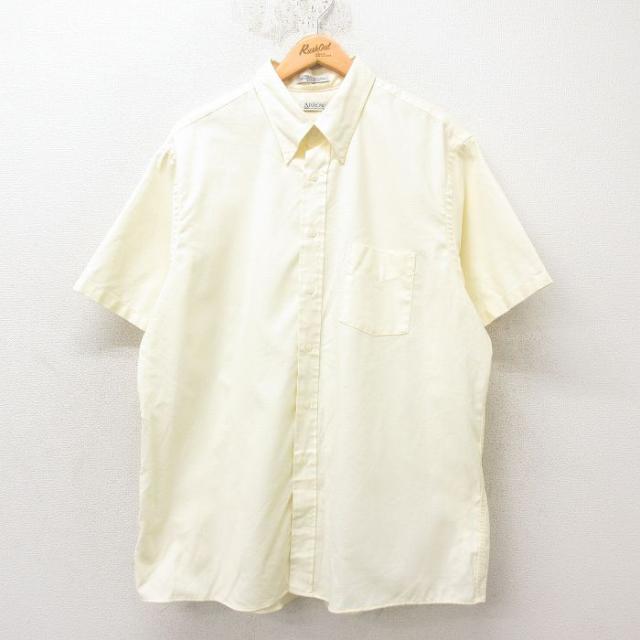 古着 半袖 シャツ メンズ 90年代 90s オックスフォード ロング丈 ボタンダウン USA製 薄黄色 イエロー Mサイズ 中古 トップス 中古 古着
