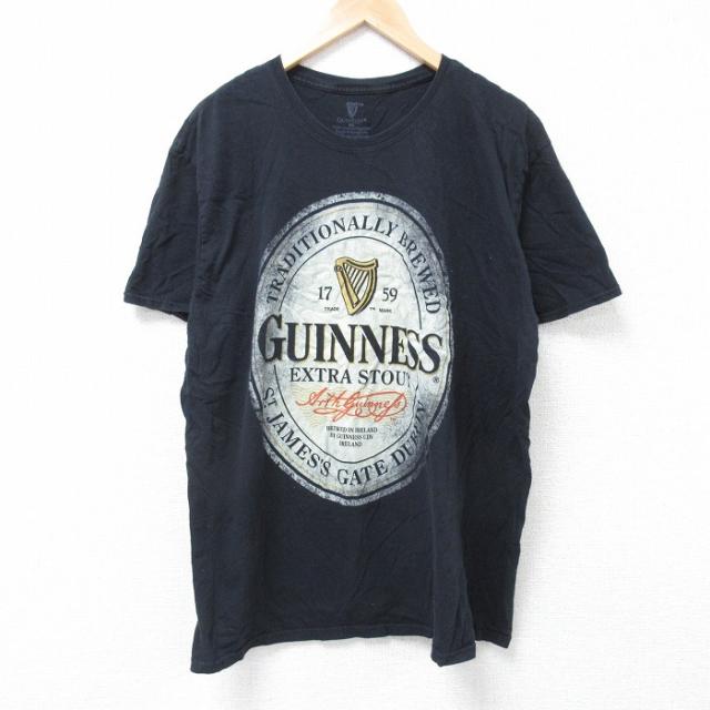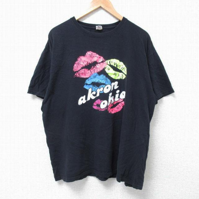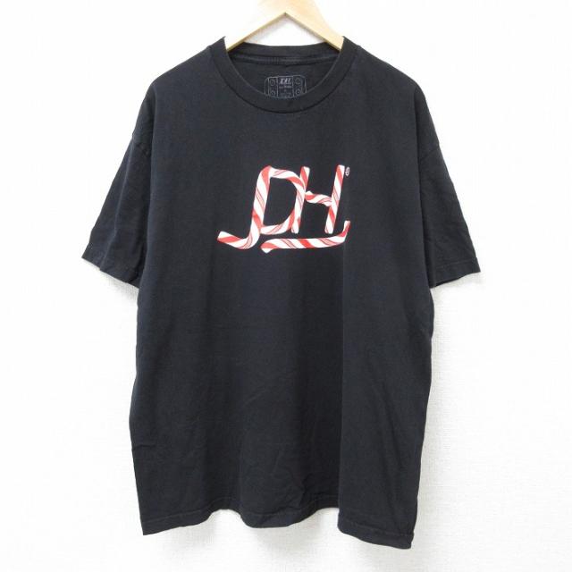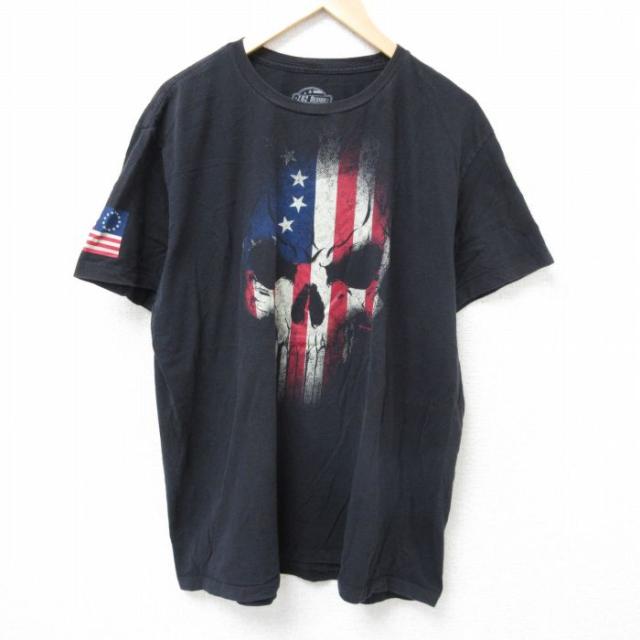 古着 半袖 Tシャツ メンズ スカル 大きいサイズ コットン クルーネック 黒 ブラック XLサイズ 中古 中古 古着