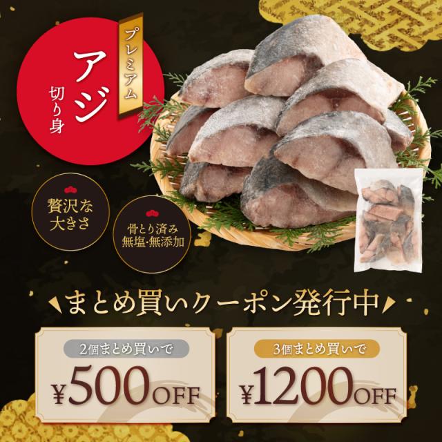 【無添加・無塩】プレミアム 骨取り 鰺 アジ 切り身 大サイズ (80g×10切) 2個購入500円 3個購入1,200円 OFF まとめ買いクーポン付 天然 骨なし チャック袋 バラ凍結 冷凍 グルメ ギフト プレゼント